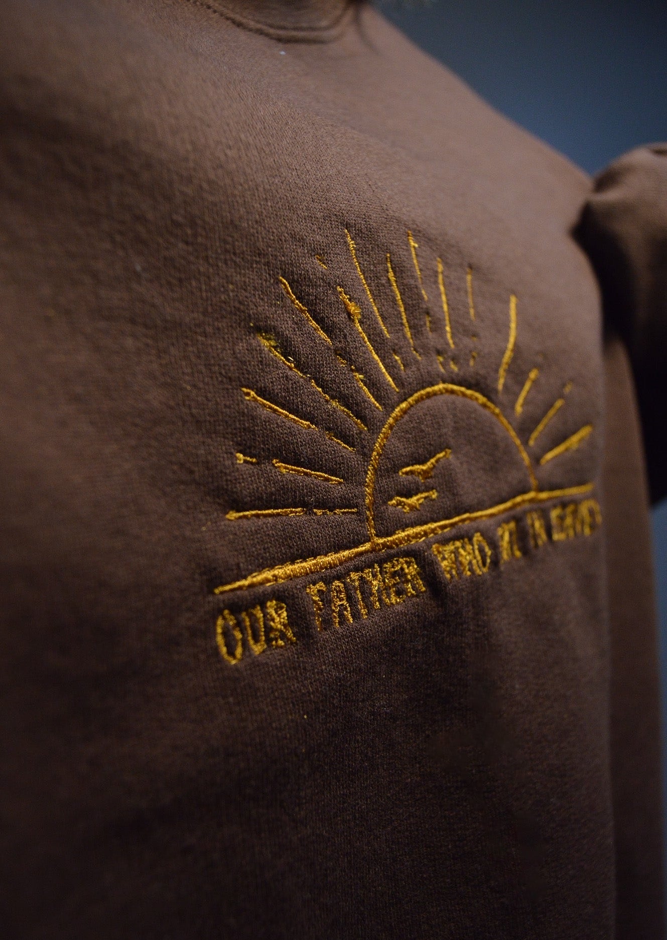 DESIGN: OUR FATHER WHO ART IN HEAVEN featuring a sunset (embroidered in gold)