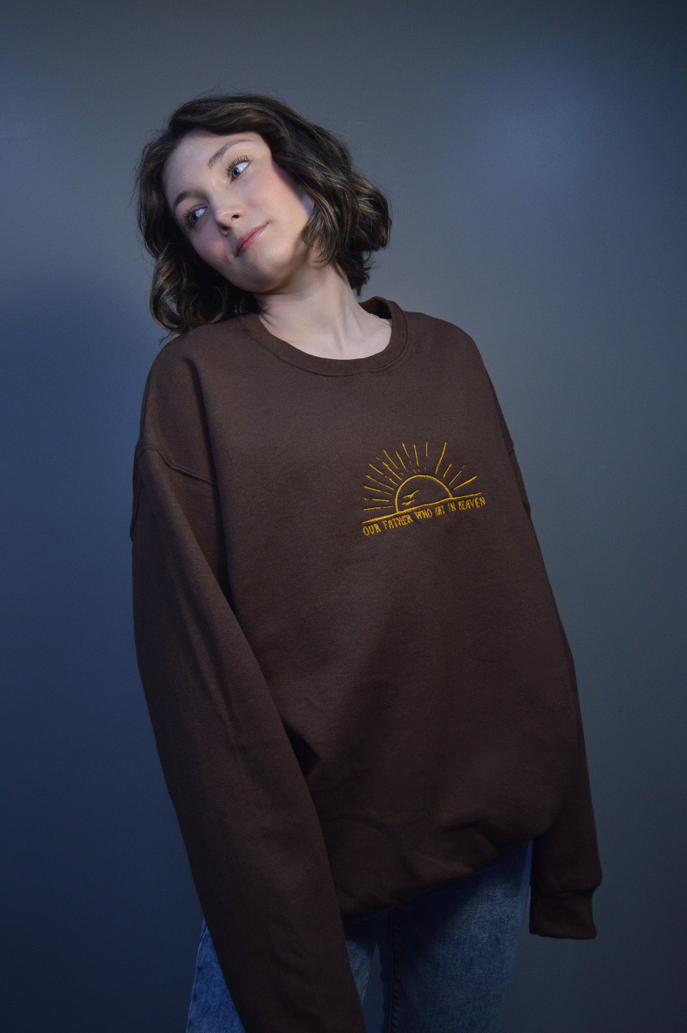 The Our Father crewneck is a simple piece that is perfect as a gift or a casual night out with friends. This Christain sweatshirt is soft and light weight. Thoughtfully designed with the Christian community in mind, this crewneck offers the perfect balance of comfort and style, making it a versatile addition to your wardrobe. Made with soft, lightweight materials, it's an ideal choice for gifting or casual outings with friends.